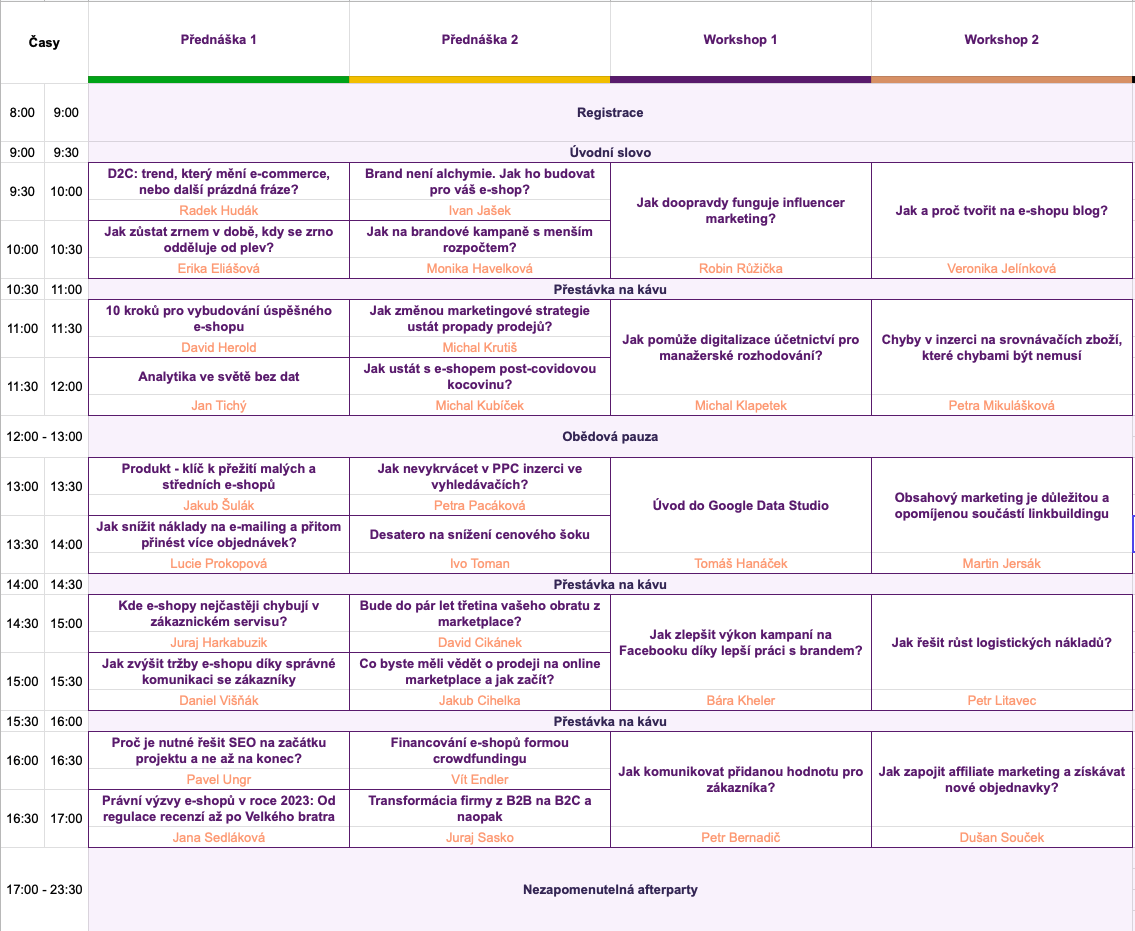 Přednášky a workshopy povedou tyto zajímavé osobnosti: Konference pro e-shopy | E-commerce day (ecommerceday.cz)